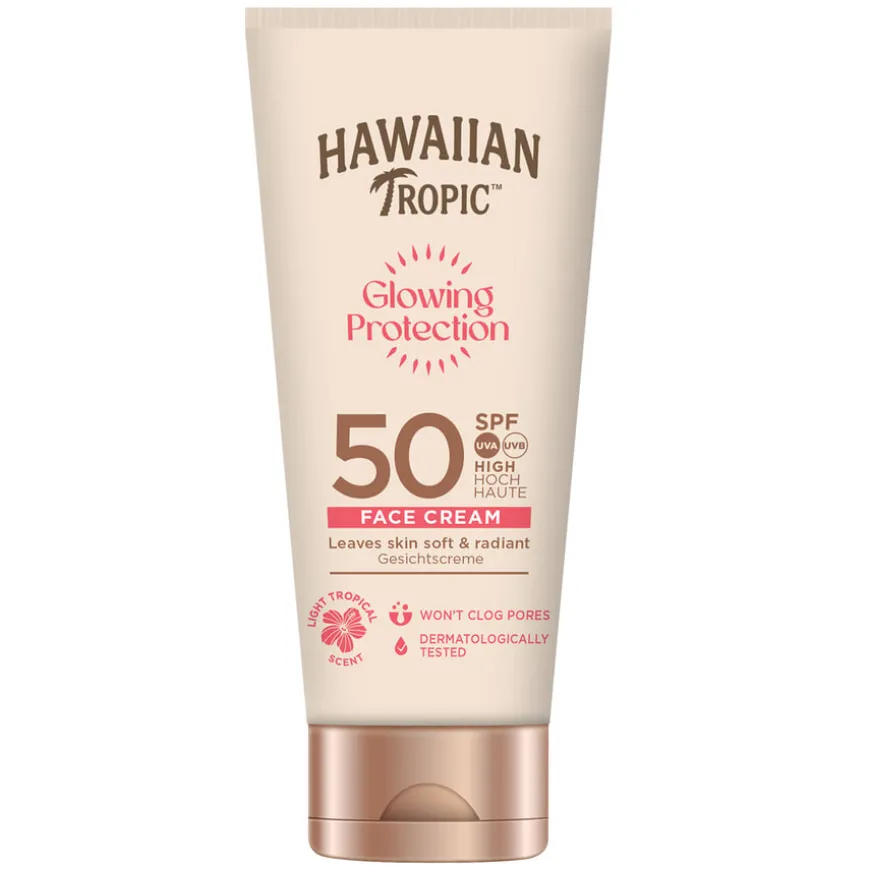 Opplev den perfekte kombinasjonen av solbeskyttelse og hudpleie med Hawaiian Tropic Glowing Protection Face Cream SPF 50. Denne dermatologisk testede ansiktskremen gir høy UVA/UVB-beskyttelse samtidig som den nærer huden med sheasmør og vitamin E.