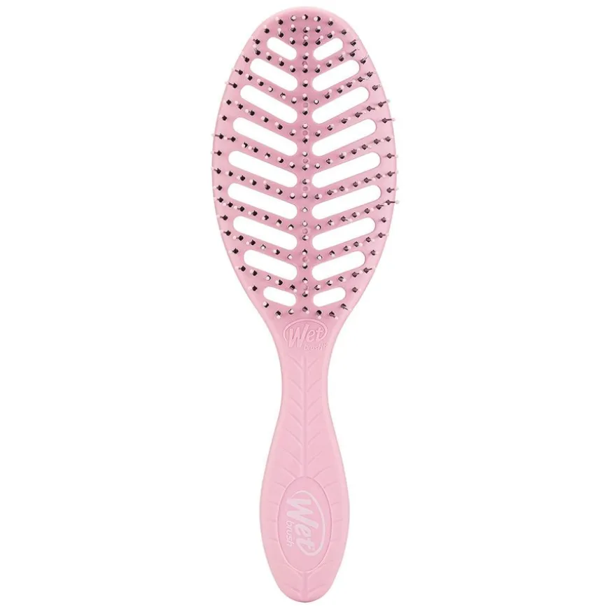 Wetbrush Go Green Speed Dry Pink er en hårbørste med et design som gjør tørketiden kortere. Hårbørsten hjelper håret med å holde seg sterkt og sunt. Børsten har ergonomisk grep, samt en myk og meget fleksibel IntelliFlex®-bust, noe som gjør at den glir lett gjennom håret og fjerner enhver form for «rykk» som forårsaker slitasje og sår hodebunn. Passer til alle hårtyper.