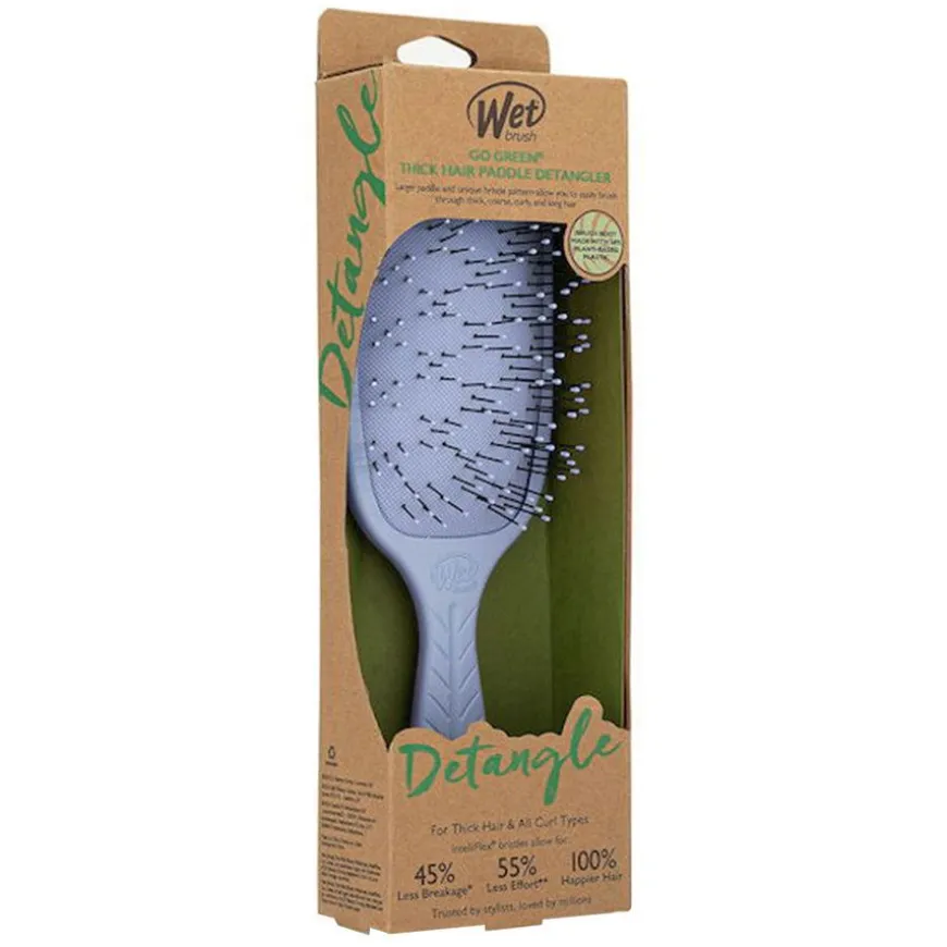 Go Green Thick Hair Paddle er en børste spesielt designet for å håndtere tykt og uregjerlig hår uten ubehag. Den har en stor børsteflate som effektivt fjerner floker uten smerte, selv i de groveste hårtypene. Børsten er laget av 58% plantebasert plast. Med myke og svært fleksible IntelliFlex®-bust glir den enkelt gjennom håret, eliminerer rykk som kan forårsake slitasje og ubehag i hodebunnen. Det spesielle bustmønsteret gjør det enklere og mindre smertefullt å børste gjennom tykt, grovt, krøllete og langt hår, både når det er vått og tørt. Med Go Green Thick Hair Paddle får du en børste som tar vare på håret ditt samtidig som den er skånsom og behagelig å bruke.