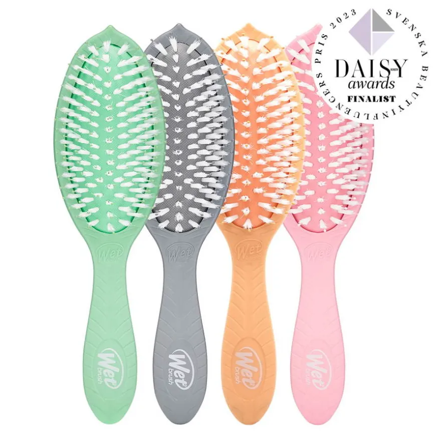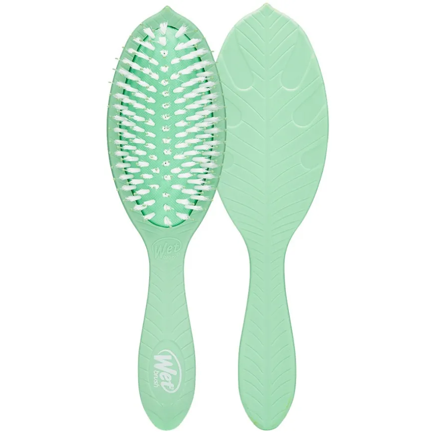 Go Green Treatment And Shine er en miljøvennlig og biologisk nedbrytbar utredende glansbørste. Hårbørsten lugger minimalt i det den glatter gjennom håret, selv gjennom det mest flokete og uregjerlige hår! Børstens håndtak er laget av biologisk nedbrytbar plantestivelse. Det vil si at om den kastes og havner på et deponi, vil den brytes ned innen fem år. Børsten bust består av syntetisk villsvinbust som fordeler den naturlige oljen i håret og etterlater det skinnende blankt. I tillegg består busten av en svært fleksibel og myk IntelliFlex®-bust. Dette gjør at børsten lett føres gjennom håret uten å forårsake rykk som igjen kan føre til slitasje på hår og hodebunn. Børstens pute inneholder rikelig med tea tree olje for å eliminere årsaker som forårsaker tørrhet, irritasjon og smuss. Håret etterlates mykere og mer glansfullt.