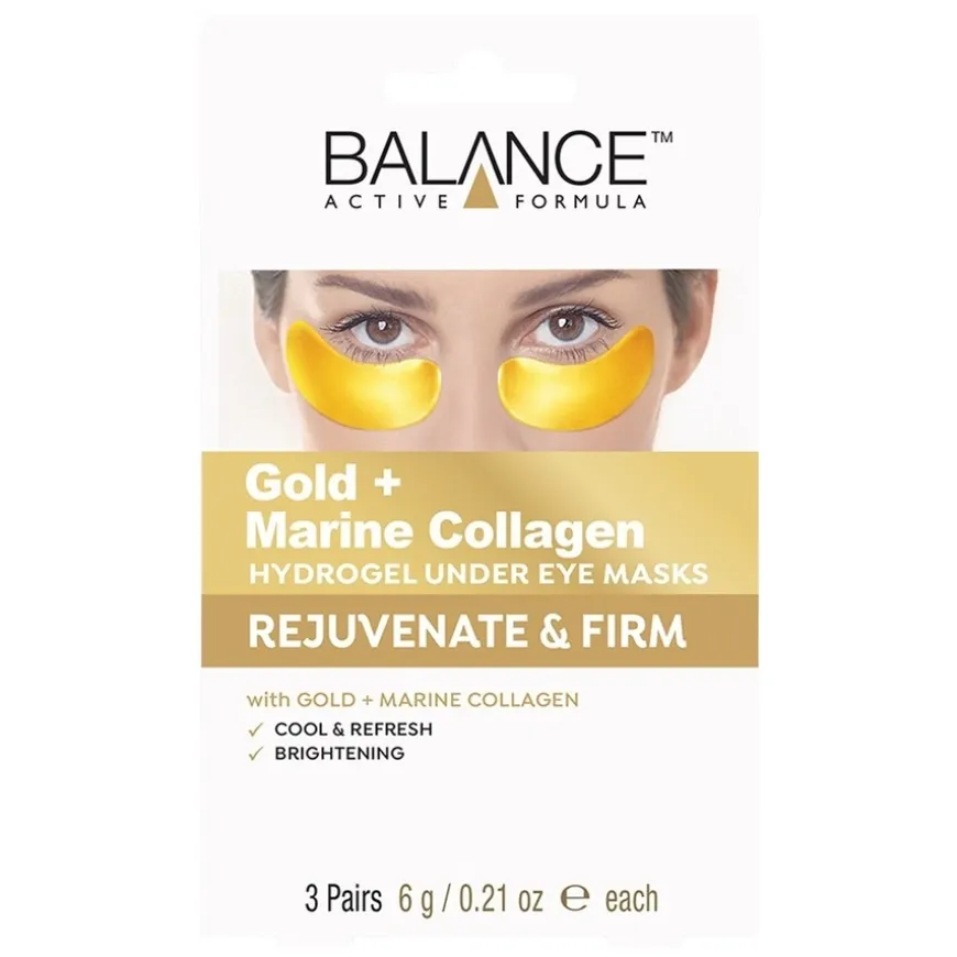 Opplev umiddelbar oppfriskning med Gold Marine Collagen Hydrogel Under Eye Masks fra Balance Active Formula. Disse pleiende øyemaskene er beriket med kolloidalt gull, som gir huden en naturlig glød, og marint kollagen, som jevner ut og styrker huden under øynene. Maskene har en beroligende og kjølende effekt som revitaliserer trøtte øyne og gir en følelse av velvære. Den hydrogel-baserte formuleringen gjør dem behagelige å bruke og sørger for god kontakt med huden under hele virketiden. Perfekt før en spesiell anledning eller som en del av din ukentlige hudpleierutine.