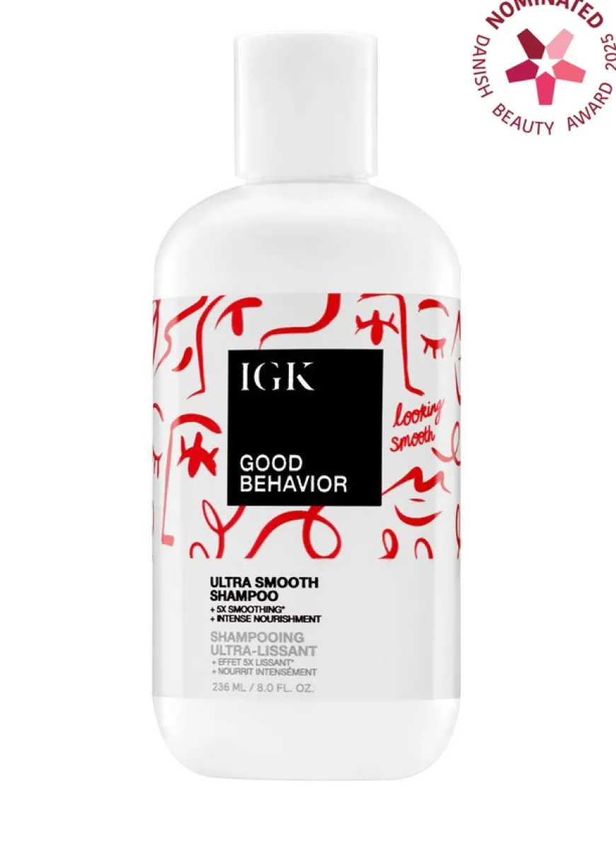 Good Behavior Ultra Smooth Shampoo er en øyeblikkelig utglattende shampoo med Frizz-Blocking Barrier teknologi for å bekjempe frizz før den oppstår, håret blir fem ganger glattere etter bare en gangs bruk. Den oljerike formelen gir dyp næring, tilfører glans og silkemykhet, perfekt for enhver frizzfri look, uansett om håret er krøllete eller rett. Vegansk.