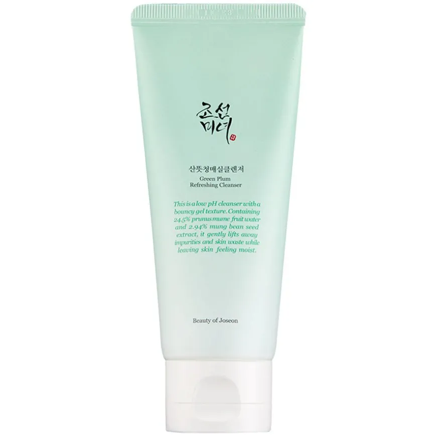 Green Plum Refreshing Cleanserer en rens med lav pH og med en spenstig geltekstur. Inneholder 24,5% prunus mume-fruktvann (grønn plomme) og 2,94% mungbønnefrøekstrakt, og fjerner skånsomt urenheter og hudavfall samtidig som huden føles fuktig.