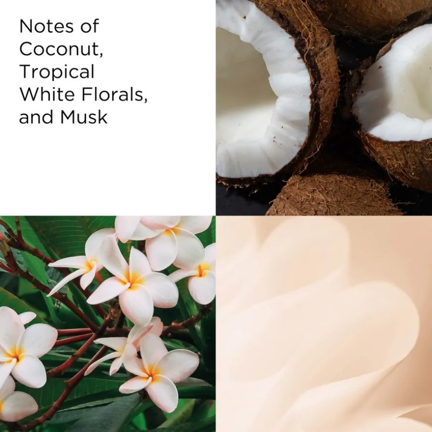 Vekk sansene dine med Green Tea Coconut Breeze Eau De Toilette, en sitrusaktig, blomsteraktig og fruktig duft. Denne energigivende, tropiske duften løfter stemningen med noter av: saltet kokosnøttkjøtt-akkord, deilig kokosflak, grønn te-akkord, karmaflor®, hvit rav, musk og eikemose-akkord.