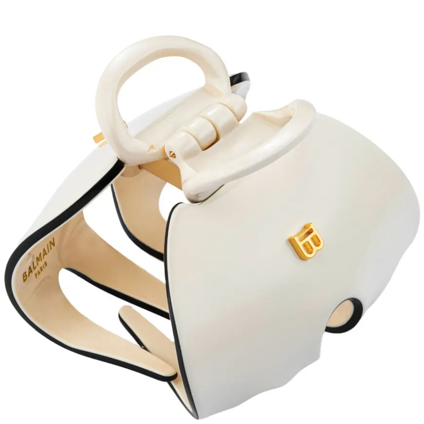 Hair Clip Imperial er en oversized, håndlaget hårspenne laget av holdbart celluloseacetat. Dekorert med Balmain sin signatur, en gullbelagt B-logo. En sofistikert hårklype med svart kant, spesielt designet for langt og tykt hår. Spennen er perfekt for å sikre håret i en knute eller en høy hestehale.