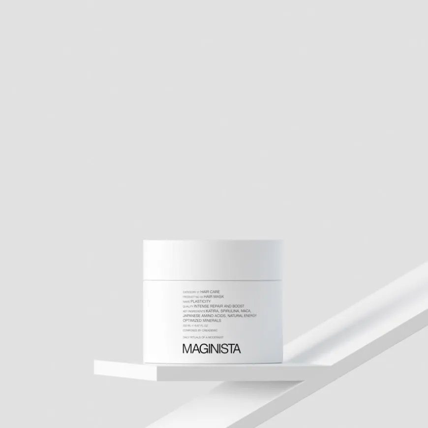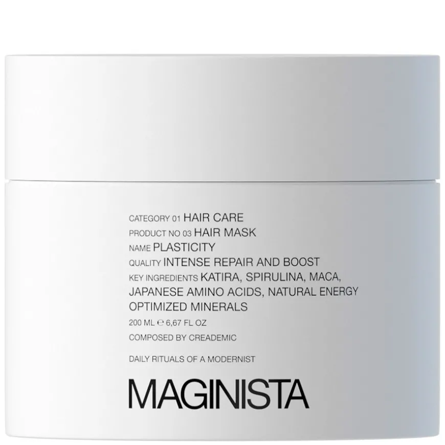 Maginista sin Plasticity Hair Mask er en intens og virkningsfull blanding av naturlige, energioptimerte mineraler og planteekstrakter, blant annet katira fra Midtøsten, maca fra Peru og spirulina fra Hawaii.