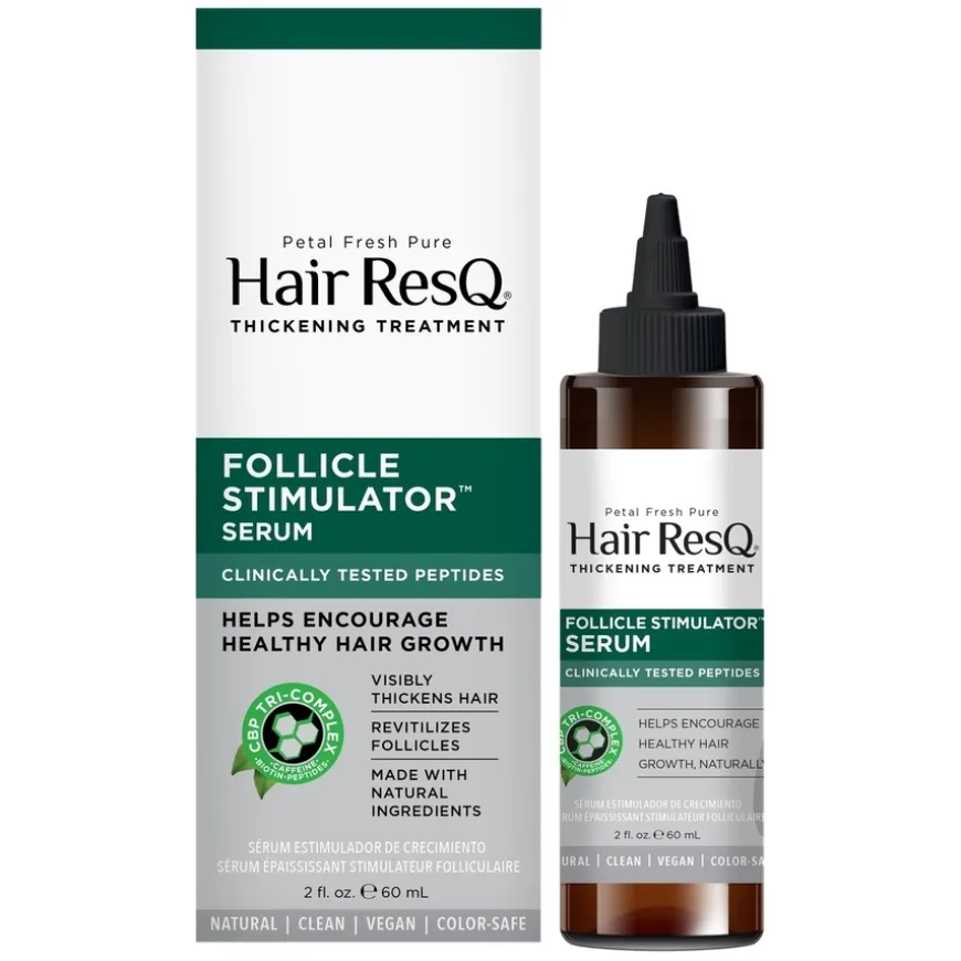 Hair ResQ Follicle Stimulator Serum er et serum utviklet for tynnende hår, unikt formulert med CBP Tri-Complex, en proprietær blanding av plantebaserte peptider, biotin og koffein. Klinisk testede peptider retter seg mot DHT, som er en årsak til begynnende hårtap, mens biotin og koffein forbedrer sirkulasjonen for å nære hårsekkene. Dette styrker teksturen og beriker hårstråene, noe som gir inntrykk av tykkere og fyldigere hår ved kontinuerlig bruk.