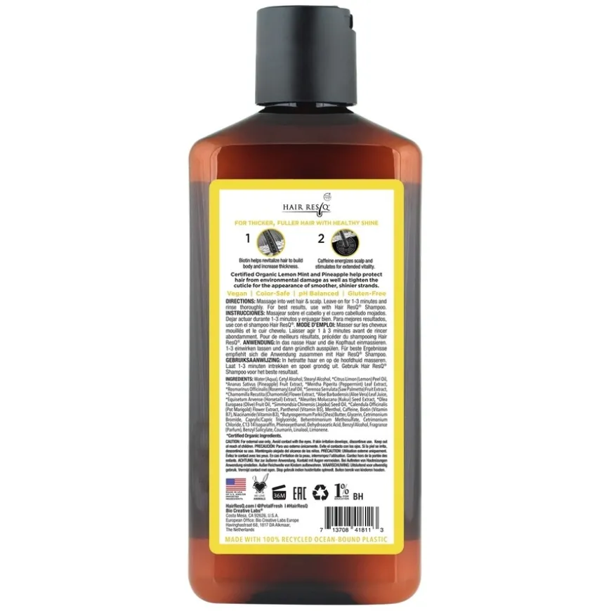 Hair ResQ Thickening + Shine Boost Conditioner er en naturlig balsam utviklet for tynnende hår. Formulert med biotin for å styrke og revitalisere håret, samt koffein for å energisere og stimulere hårsekkene og fremme sunn hårvekst. Sertifisert økologisk sitronmynte og ananas bidrar til å beskytte håret mot miljøskader og stramme opp skjellaget, noe som gir glattere og mer glansfulle hårstrå. Produktet er vegansk, og emballasjen er laget av 100 % resirkulert Ocean Bound Plastic.