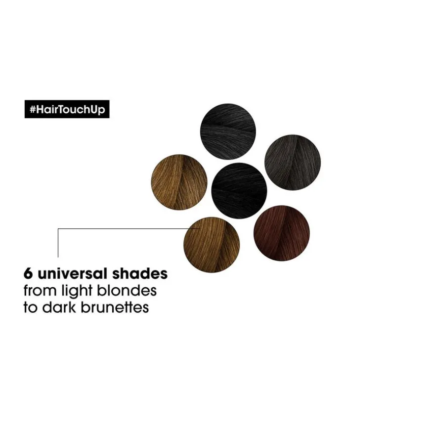 L’Oréal Professionnel Hair Touch Up for mørkeblondt hår er en midlertidig touch up spray til hårrøttene for å skjule grått hår. Formulert med sminkepigmenter, blander den seg sømløst med håret for en best mulig dekkevne. Den er enkel å bruke, den tørker umiddelbart og den er ut av håret etter em vask med sjampo* vasker ut i bare én sjampo*
