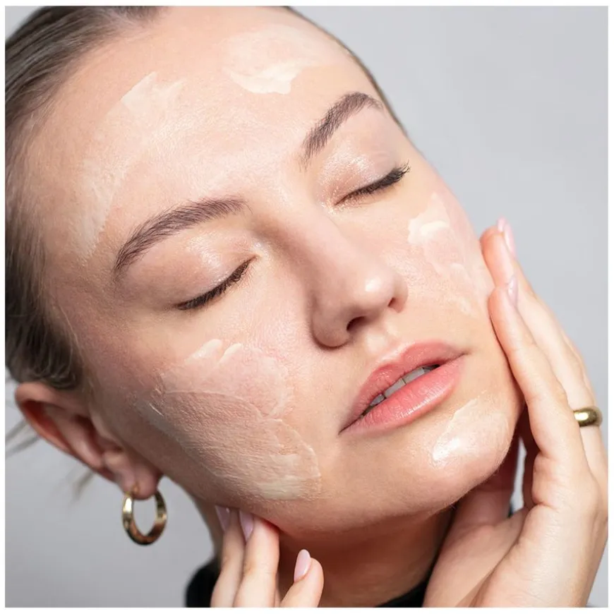 - Påfør en liten mengde på fingertuppene og masser forsiktig inn i ansiktet og halsen.