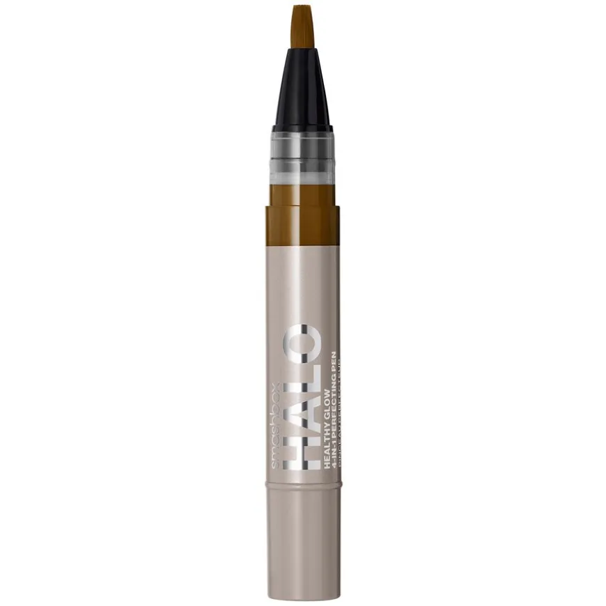 Halo Healthy Glow 4-in-1 Perfecting Pen er en concealer som sitter i 24 timer, gir fuktighet som holder hele dagen og umiddelbar glød, for enkel concealing, highlighting, konturering og korrigering. Denne penneconcealeren kan brukes til å skjule, streke opp og legge seg i fine linjer i 24 timer og er tilsatt primer for å fukte. Den byggbare dekningen skjuler sliten hud og gir en naturlig, gjenoppfrisket look. Inneholder fuktighetsgivende hyaluronsyre, nærende E-vitamin, grønn te og ginseng.