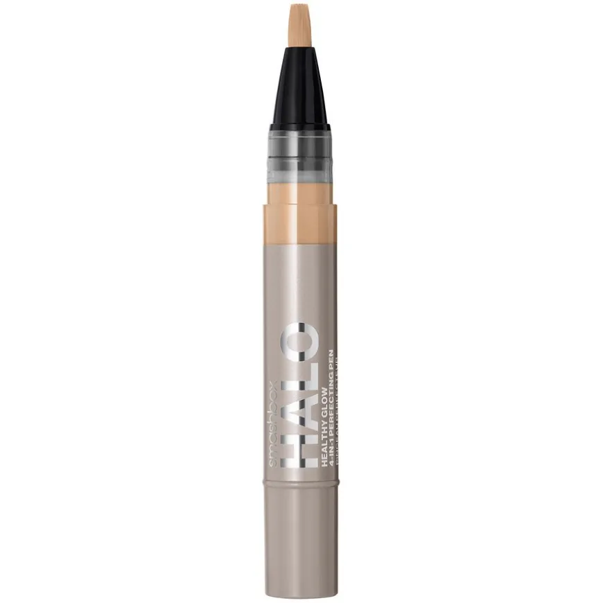 Halo Healthy Glow 4-in-1 Perfecting Pen er en concealer som sitter i 24 timer, gir fuktighet som holder hele dagen og umiddelbar glød, for enkel concealing, highlighting, konturering og korrigering. Denne penneconcealeren kan brukes til å skjule, streke opp og legge seg i fine linjer i 24 timer og er tilsatt primer for å fukte. Den byggbare dekningen skjuler sliten hud og gir en naturlig, gjenoppfrisket look. Inneholder fuktighetsgivende hyaluronsyre, nærende E-vitamin, grønn te og ginseng.