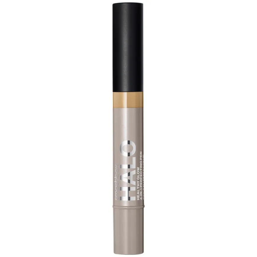 Halo Healthy Glow 4-in-1 Perfecting Pen er en concealer som sitter i 24 timer, gir fuktighet som holder hele dagen og umiddelbar glød, for enkel concealing, highlighting, konturering og korrigering. Denne penneconcealeren kan brukes til å skjule, streke opp og legge seg i fine linjer i 24 timer og er tilsatt primer for å fukte. Den byggbare dekningen skjuler sliten hud og gir en naturlig, gjenoppfrisket look. Inneholder fuktighetsgivende hyaluronsyre, nærende E-vitamin, grønn te og ginseng.