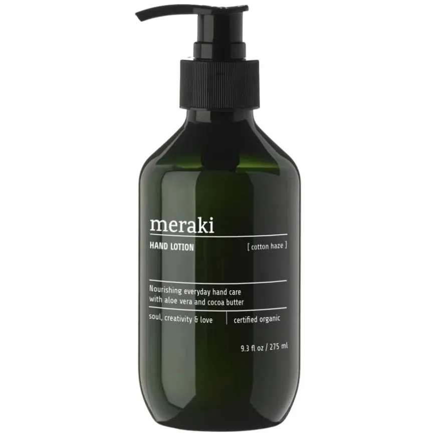 Meraki Hand Lotion Cotton Haze gir hendene dine en beroligende og pleiende opplevelse med sin økologisk sertifiserte formel. Beriket med aloe vera og kakaosmør tilfører den dyp fuktighet og næring, slik at huden forblir myk og smidig gjennom hele dagen. Den lette og raskt absorberende konsistensen etterlater ingen fet hinne, mens den subtile og friske duften revitaliserer sansene. Perfekt for daglig pleie og for å opprettholde velnærede hender.