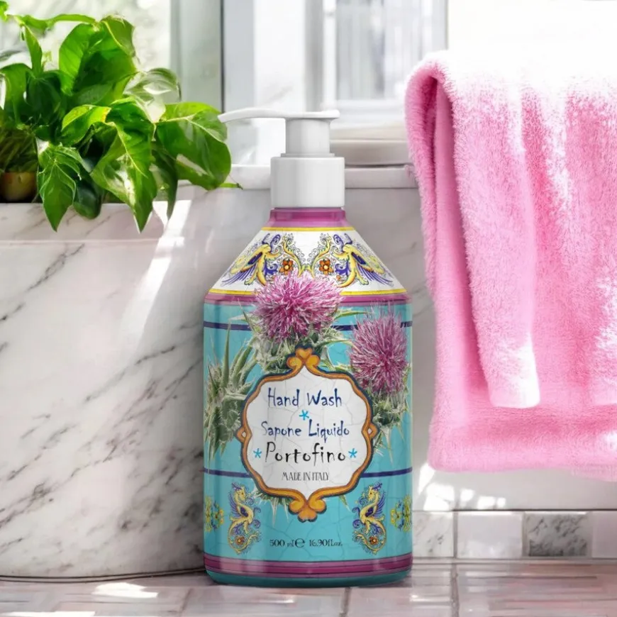 Hand Wash Portofino er en herlig flytende såpe beriket med Aloe Vera juice og vitamin E for ekstra fuktighet og næring til huden. Motvirker tørr hud, holder den myk, og etterlater en nydelig frisk duft. En fortryllende blanding av blant annet gardenia, bringebær og jasmin. Som å vandre gjennom en blomsterhage på en varm sommerdag. Gardeniaens kremaktige og sensuelle aroma omfavner sansene, mens bringebærets sødme legger til en frisk og livlig touch. Jasminens delikate duft legger et subtilt hint av eleganse og fortryllelse. Ren magi.