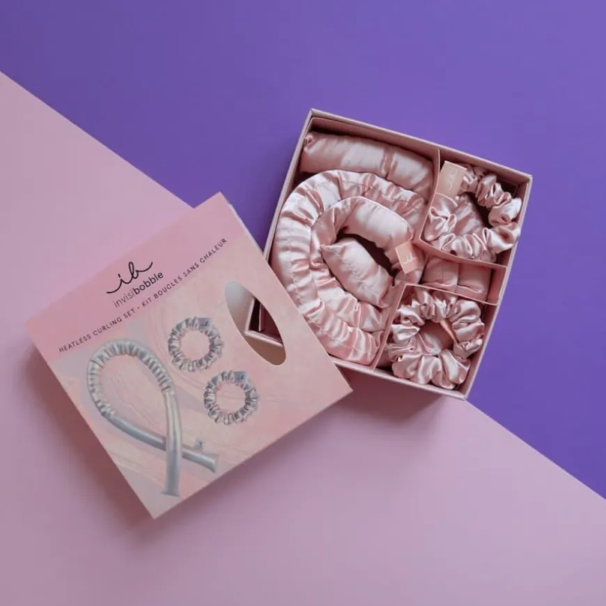 Handle with Curl-settet er et varmefritt og bruksvennlig krøllsett laget i et førsteklasses silkeaktig materiale for å skape nydelige frisyrer uten bruk av varme. Det myke materialet i båndet er laget for en mest mulig behagelig søvn, mens de stilige scrunchiene holder alt på plass.