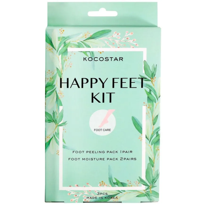Happy Feet Kit er et sett fra Kocostar som inneholder perfekte produkter for å gi deg vakre, glatte og myke føtter. Med Kocostars bestselgere; Foot Moisture Pack og Foot Peeling Pack, vil føttene dine få den pleien de fortjener. Et perfekt sett for hjemmespa!