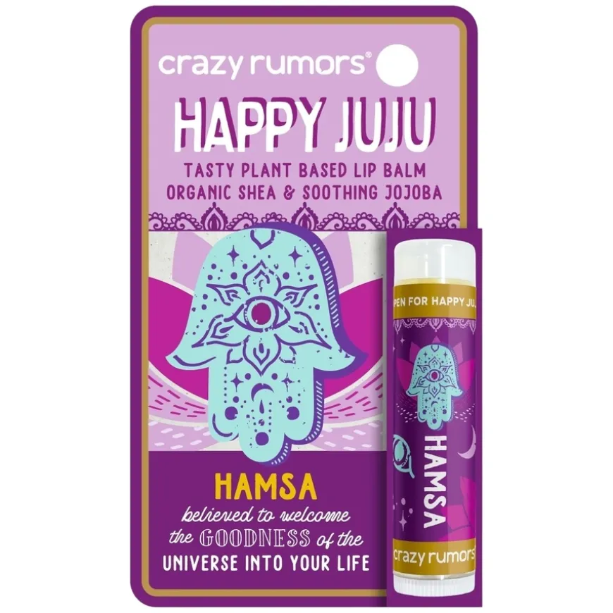 Crazy Rumors Lip Balm er inspirert fra hele verden! Denne leppepomaden er knyttet til en håndformet amulett fra Midtøsten, et symbol på velstand som sies å ønske godhet velkommen inn i livet ditt. Oppdag de delikate smakene av appelsinblomst og aprikos. Crazy Rumors leppepomader er 100 % naturlige og veganske, og både lukter og smaker fantastisk! De inneholder fuktighetsgivende sheasmør som gir næring og beskytter tørre lepper. Gir langvarig fuktighet og gjør leppene dine fantastisk myke. I tillegg er de smaksatt med naturlige smaker og eteriske oljer, samt søtet med litt naturlig stevia.