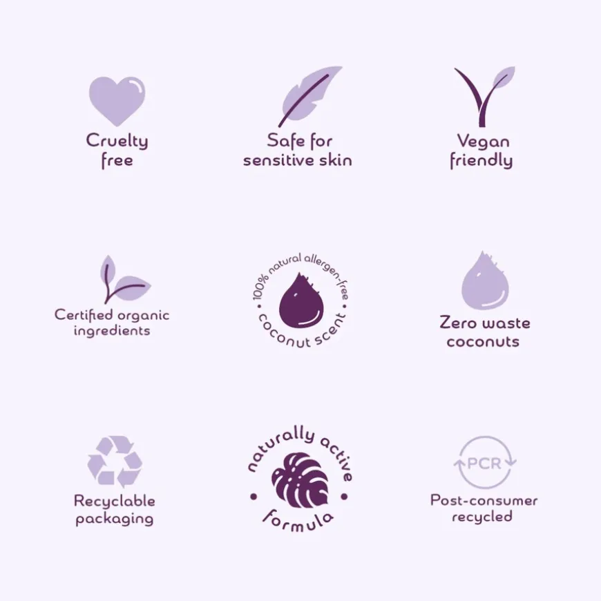Sertifiserte økologiske ingredienser. Resirkulerbar innpakning. Sertifisert egnet for sensitiv og eksemutsatt hud. Cruelty-free.