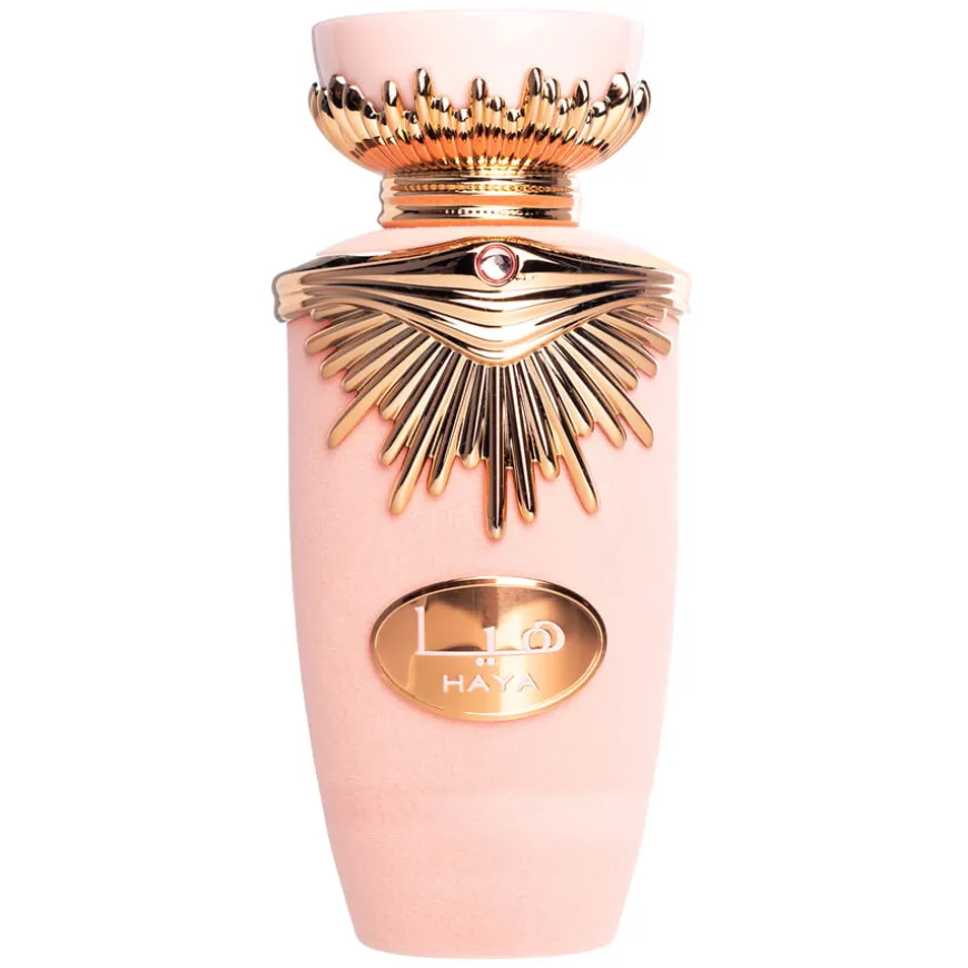 Haya Eau De Parfum er en elegant dameparfyme som forener florale, fruktige og gourmand-noter i en sofistikert komposisjon. Dette er duften for deg som ønsker å uttrykke femininitet og styrke på én gang – uansett om du er på vei til et møte, en middag eller en dag ute i solen. Duften åpner med en frisk og boblende kombinasjon av champagne, jordbær, blodappelsin, mandarin og rose. Hjertet utvikler seg videre med sensuelle og florale noter av gardenia, sjasmin og vaniljeorkidé. Basen gir en lun og fyldig avslutning med amber, sandeltre og ristede kastanjer som legger seg mykt og varmt på huden.