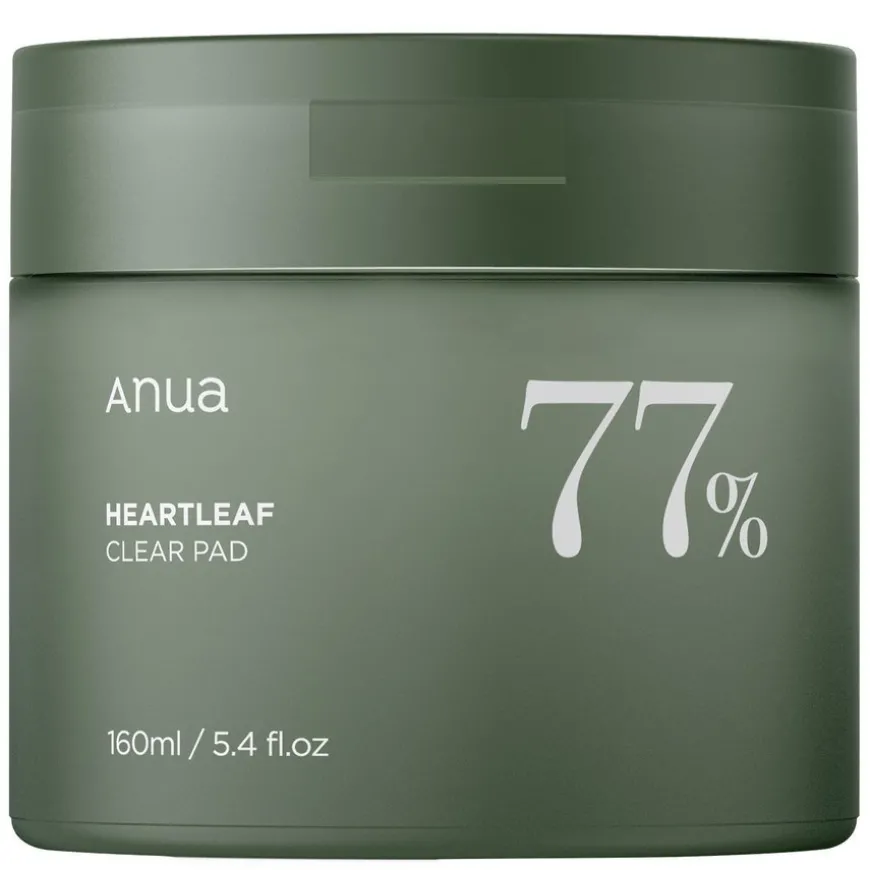 Heartleaf 77% Clear Pad er et eksfolierende og beroligende hudpleieprodukt ideelt for alle hudtyper, spesielt sensitiv og akneutsatt hud. Padsene er infusert med 77% Heartleaf-ekstrakt, kjent for sine beroligende og betennelsesdempende egenskaper, som hjelper til med å roe irritert hud, redusere rødhet og forebygge akne. I tillegg inneholder padsene Glukonolakton (PHA), en mild eksfoliant som fjerner døde hudceller, forbedrer tekstur og øker gløden. Allantoin og kamilleekstrakt beroliger og reparerer huden, mens Centella Asiatica-ekstrakt styrker hudbarrieren og fremmer kollagenproduksjonen for bedre elastisitet og hudtone.