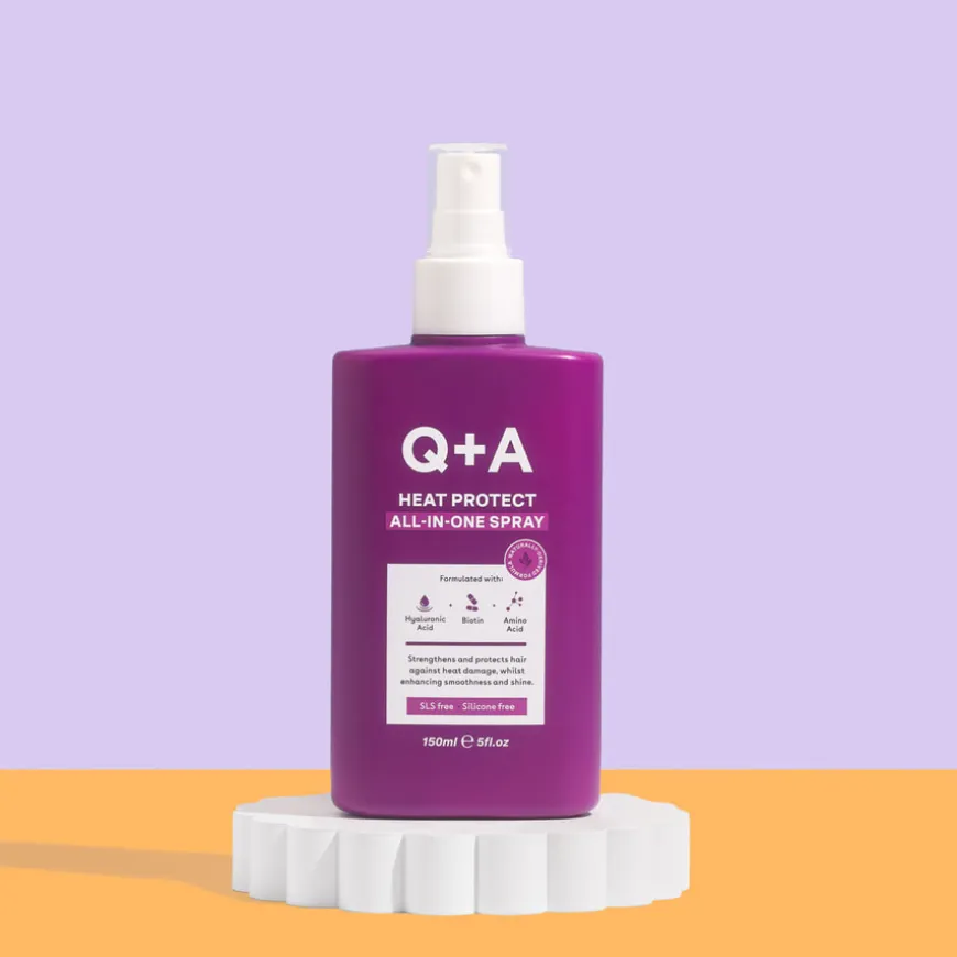 Heat Protect Hair Mist fra Q+A er en varmebeskyttende spray som styrker og beskytter håret og et glansfullt resultat. Formulert med hyaluronsyre, biotin og aminosyrer som gir håret rikelig med fukt og gjør håret sterkere og mer motstandskraftig mot slitasjen fra stylingverktøy og miljøpåvirkninger. En varmebeskyttende spray som gjenoppliver håret, låser inn fuktigheten og gir et mykt og glansfullt hår.