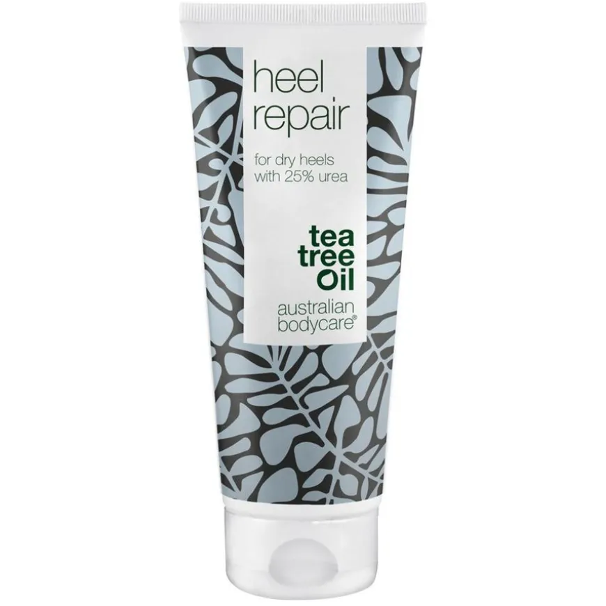 Heel Repair er en intens hælkrem som pleier og lindrer tørr og hard hud på føtter og hæler. Den aktive ingrediensen urea (25 %) løser opp den harde huden og hælsprekkene, og heler huden på en sunn måte så den igjen fremstår som pen, glatt og fuktmettet. Den naturlige, aktive ingrediensen tetreolje motvirker at urenheter trekker ned i den ømme og sprukne huden og danner et beskyttende lag, så tørre føtter og hælsprekker er beskyttet hele dagen og natten.