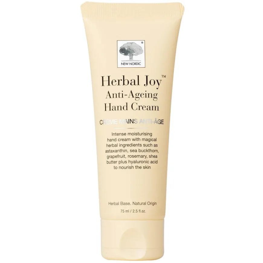 Herbal Joy™ Anti-Ageing Hand Cream er en intens fuktighetsgivende håndkrem med magiske urtebaserte ingredienser, som astaxantin, tindved, grapefrukt, rosmarin, sheasmør og hyaluronsyre, som alle bidrar til å gi næring til huden.