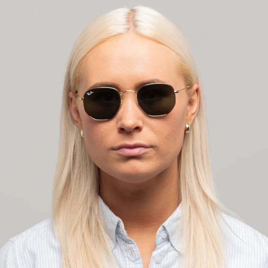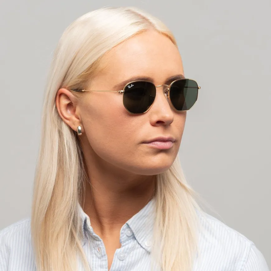 Hva skjer når du kombinerer en sirkel med en firkant? Du får den heksagonale RB 3548N, en stilig evolusjon av den tradisjonelle runde formen, utstyrt med flate krystallinser. Denne unike blandingen hvor «rundt møter flatt» resulterer i en heksagonal rund metallramme, preget av sitt tynne, elegante profil og klassiske gullfargede flate linser, understøttet av ultra-tynne stenger.