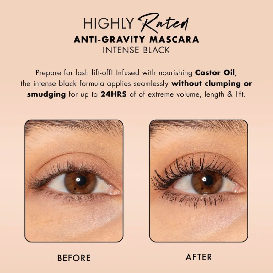 Milani’s Highly Rated Anti-Gravity Mascara leverer umiddelbart ekstrem volum, lengde og løft for virkelig fantastiske vipper. Beriket med nærende ricinusolje, påfører den intens pigmenterte formelen seg sømløst uten klumping eller smudging, og gir opptil 24 timer med feilfritt resultat. Den fleksible, støpte timeglassformete børsten dekker og griper hver eneste vippe for maksimal effekt hver gang.