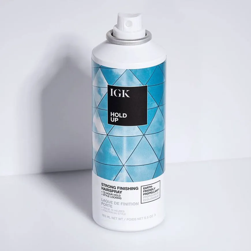 Hold Up Strong Hold Hairspray er en finishingspray med sterkt hold, utviklet i IGK salongen. Den låser inn frisyren og gir 72-timers hold og høy glans med fuktighetsbestand, uten å bli flakete. Denne next-generation formulasjonen har et miljøbevisst drivmiddel for en ultralav effekt på global oppvarming. Formulaen har en miljøbevisst teknologi med Kameliaolje for høy glans og lett fukt. Låser inn frisyren med polymerer som gir langvarig hold. Passer for alle hårtyper. Vegansk.