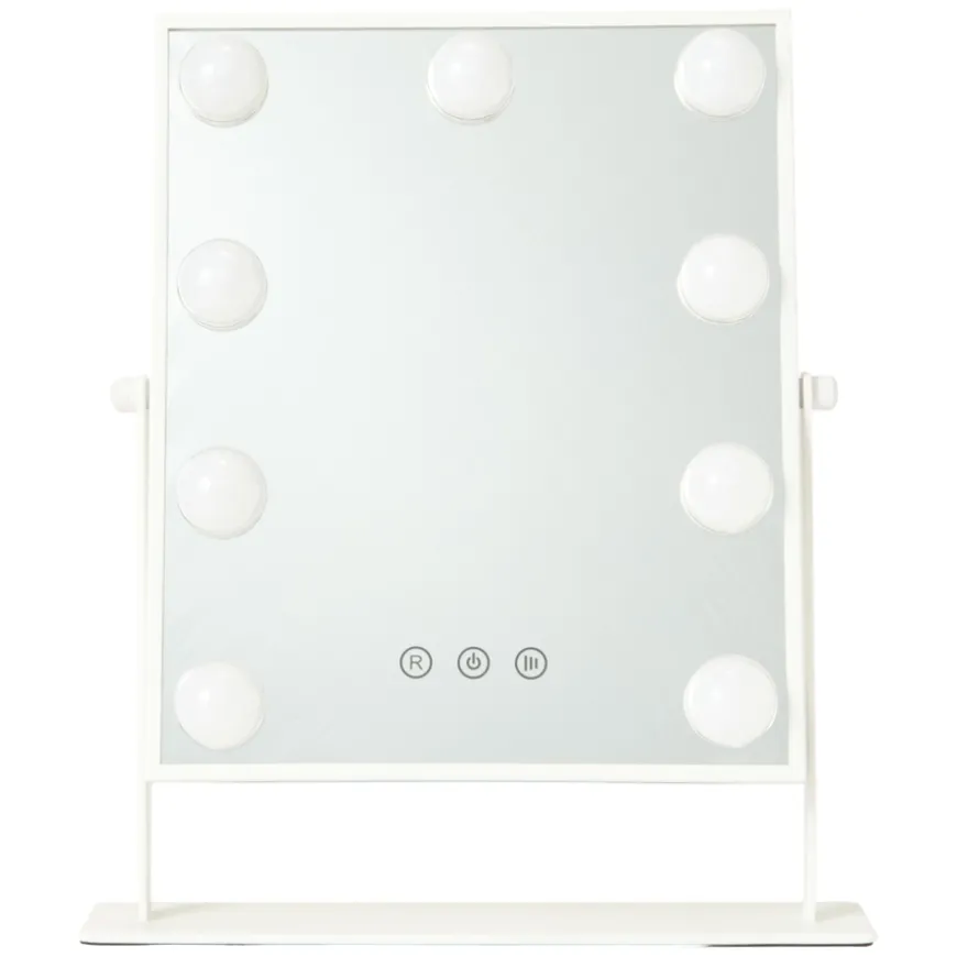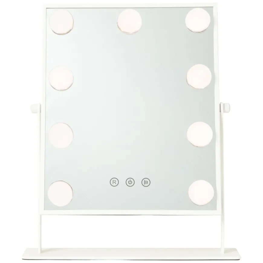 Hollywood LED Mirror er det ultimate verktøyet for din daglige skjønnhetsrutine. Denne elegante speilen har en stilren hvit finish som gir et luksuriøst preg til rommet ditt. Med en innebygd touch-sensor kan du enkelt bytte mellom varmt og kaldt lys for optimal belysning. Speilen kan roteres 360 grader for presisjonsstyling og komfort. Størrelsen på speilen er 39,5cm høy og 35cm bred, perfekt for både profesjonell og hverdagslig bruk. Speilet krever fast tilkobling til strømnett.