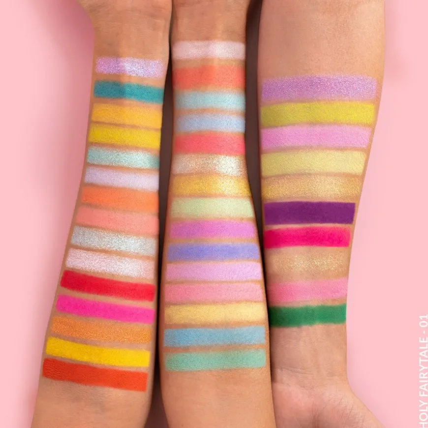 Holy Fairytale Presses Pigment Palette Cottage Coreer en øyenskyggepalett med 40 pressede pigmentfarger i himmelske pasteller og eksplisitte farger som hentet direkte fra en eventyrbok! La fantasien din få fritt spillerom og la deg inspirere til å skape de mest fantastiske lookene. Fra frodige grønne nyanser til sopp-røde, dette fargeutvalget vil bli din nye favorittregnbuepalett!