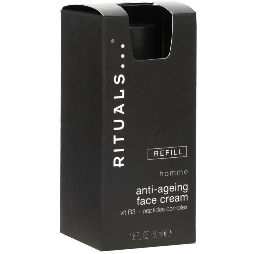 Refill til Homme Anti-Ageing Face Cream – en oppstrammende fuktighetskrem som både fukter og beskytter huden. Kremen motvirker fine linjer og reduserer forekomsten av rynker på grunn av at formelen inneholder vitamin B3 og peptider.