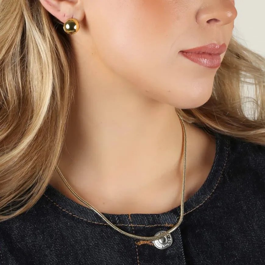 Honey Skinny Necklace fra Snö Of Sweden er et halskjede i gullbelagt messing med en elegant, slangeformet lenke. Dette smykket gir et glatt, fleksibelt uttrykk som legger seg pent rundt halsen. Det tidløse designet gjør det perfekt både alene eller kombinert med andre kjeder for en mer uttrykksfull stil. Lengden på 45cm gir en klassisk plassering som passer de fleste antrekk og anledninger.