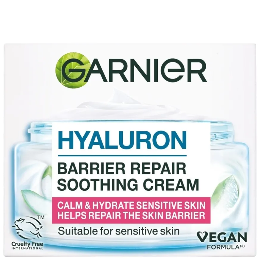 Hyaluron Barrier Repair Soothing Daycream er en fuktighetsgivende dagkrem som styrker hudbarrieren og gir langvarig pleie. Den er beriket med økologisk aloe vera og hyaluronsyre av naturlig opprinnelse, og gir huden opptil 48 timers intensiv fuktighet og næring.