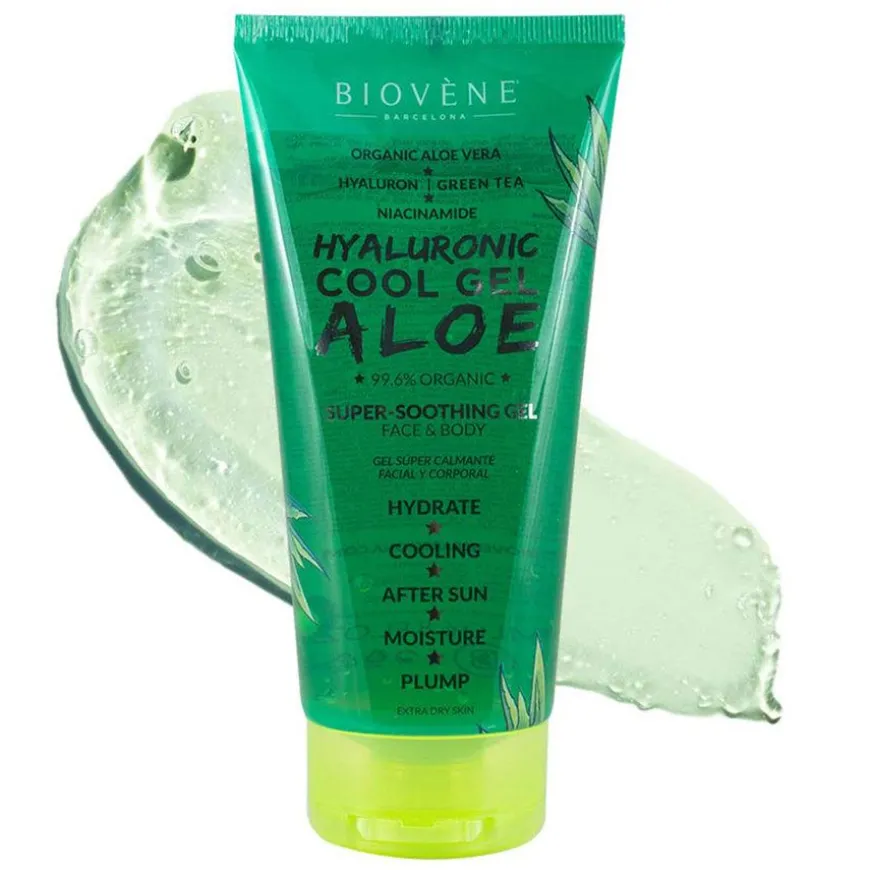 Hyaluronic Cool Gel Super-Soothing Organic Aloe Vera Body Treatment er en beroligende gel for ansikt og kropp laget med 99,6 % organisk aloe vera og fuktighetsgivende hyaluronsyre som kjøler, plumper og umiddelbart fukter tørr hud.