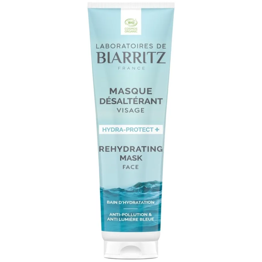 Hydra Protect + Moisturizing Mask fra Laboratoires De Biarritz er en multifunksjonell fuktighetsmaske som tilfører intensiv fukt i opptil 24 timer og hjelper med å forhindre fuktighetstap. Formelen er beriket med hyaluronsyre og økologisk aloe vera, som sammen gir huden et ekte fuktighetsbad. Masken passer for alle hudtyper og gir huden umiddelbart en frisk følelse. I tillegg beskytter masken huden mot daglige stressfaktorer som blått lys, forurensning, stress og tretthet, samtidig som den hjelper til med å forebygge for tidlig aldring. Dette takket være Alga-Gorria®, et patentert rødalgeekstrakt med kraftige antioksidantegenskaper.