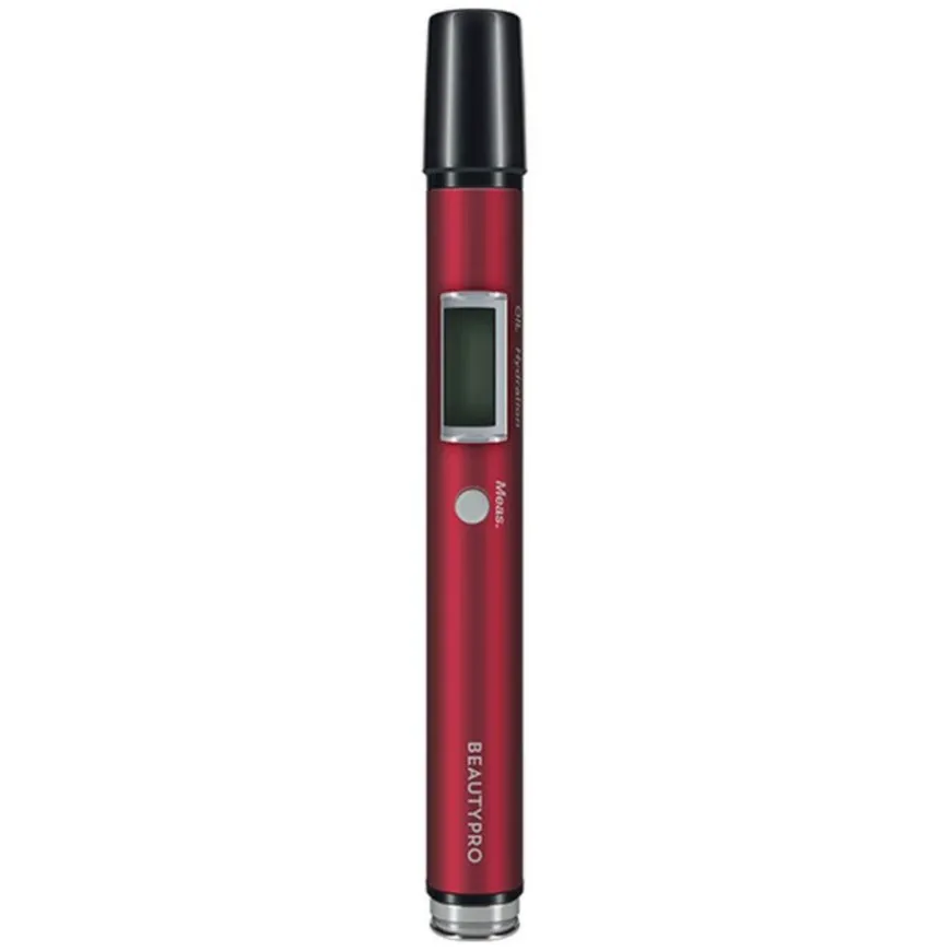 - Trykk på måle-knappen en gang, plasser kontakten mot hudområdet du ønsker å sjekke, og den digitale avlesningen vil vise olje- og fuktighetsnivået innen 3 til 5 sekunder.