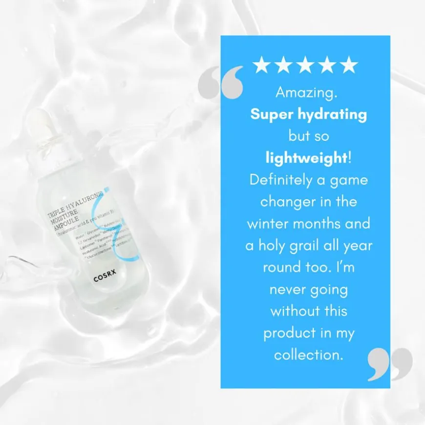 Hydrium Line anbefales til dehydrert hud som trenger et intenst fuktboost året rundt. Triple Hyaluronic Moisture Ampoule er en lett, raskt absorberende ampulle som gir dyp og langvarig fuktighet uten irritasjon og en klissete følelse. Ampullen inneholder hyaluronsyre som skaper en usynlig, beskyttende barriere på huden, holder huden fuktet og øker hudens elastisitet. Passer alle hudtyper, spesielt god til tørr og dehydrert hud.