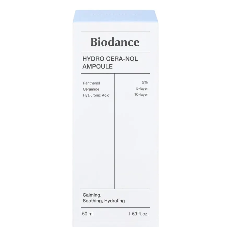 Hydro Cera-Nol Ampoule er en fuktighetsgivende og beroligende ansiktsampulle utviklet for sensitiv og reaktiv hud. Formulert med hele 5 % av Biodances patenterte Cera-Nol-kompleks, gir denne ampullen intens og rask lindring til irritert hud samtidig som den styrker hudbarrieren. Den inneholder en rekke pleiende ingredienser som ceramider, niacinamide, panthenol og hyaluronsyre for å gi huden langvarig fuktighet, forbedret elastisitet og redusert rødhet. Passer alle hudtyper, spesielt sensitiv, tørr og svekket hud.
