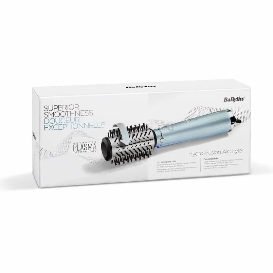 Hydro Fusion Air Styler er en roterende varmluftsbørste som gir et elegant fønet resultat. Advanced Plasma-teknologien bruker et fuktighetsbalanserende dobbelt ionesystem som kombinerer både positive og negative ioner. De arbeider sammen for å bevare hårets fuktighet og sørge for at det ikke blir krusete når du føner og styler det. Håret blir silkemykt og får en vakker glans. Den store roterende børsten med keramisk hode og en utvalgt kombinasjon av myke og polerende børstehår retter og temmer håret og former tuppene for en svært elegant finish.
