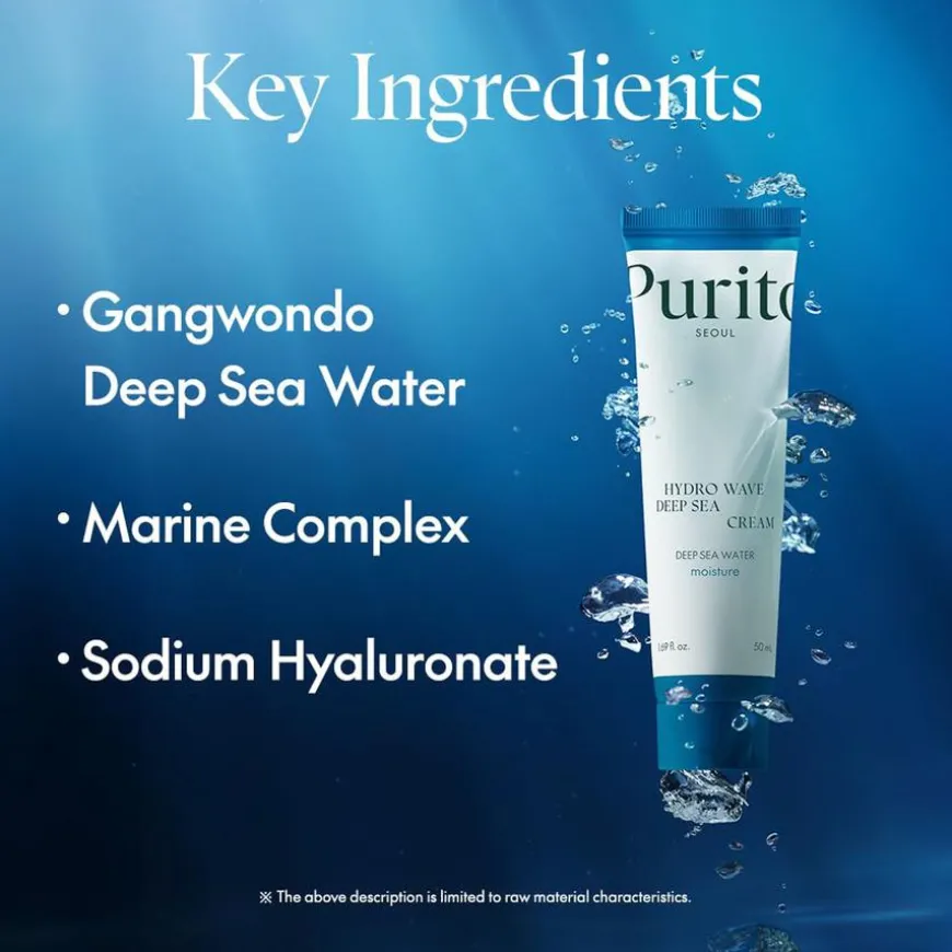 Hydro Wave Deep Sea Cream er en fuktighetsgivende og mild krem som trenger dypt inn i huden og gir den en ungdommelig glød. Denne lettvektige gel-kremen tetter ikke porene, men gir tilstrekkelig fuktighet for både dehydrert og kombinasjons-/tørr hud. Den lette gel-teksturen føles behagelig på huden og absorberes raskt, noe som gir en fin utstråling. Kremen inneholder hyaluronsyre og niacinamide, som bidrar til fastere, hydrert og ungdommelig hud. Hyaluronsyre gir effektiv fuktighet og reduserer tørrhet, dehydrering og fine linjer, mens niacinamide kan hjelpe med store porer, rødhet, pigmentering og urenheter.