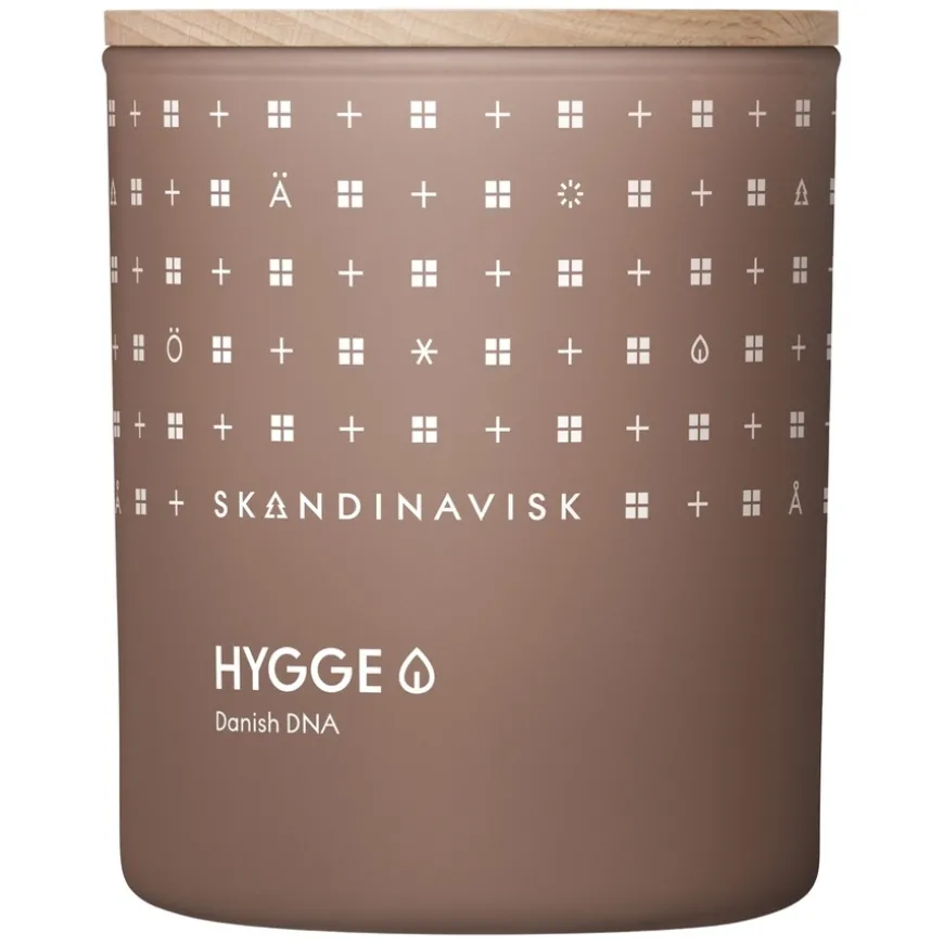 Skandinavisk HYGGE Scented Candle med voks fra svensk rapsolje, som er bærekraftig dyrket og ikke-GMO, og blandet for å brenne jevnt og sakte med minimal miljøpåvirkning. Vegansk og ikke testet på dyr.