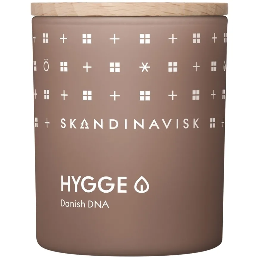 Skandinavisk HYGGE Scented Candle med voks fra svensk rapsolje, som er bærekraftig dyrket og ikke-GMO, og blandet for å brenne jevnt og sakte med minimal miljøpåvirkning. Vegansk og ikke testet på dyr.