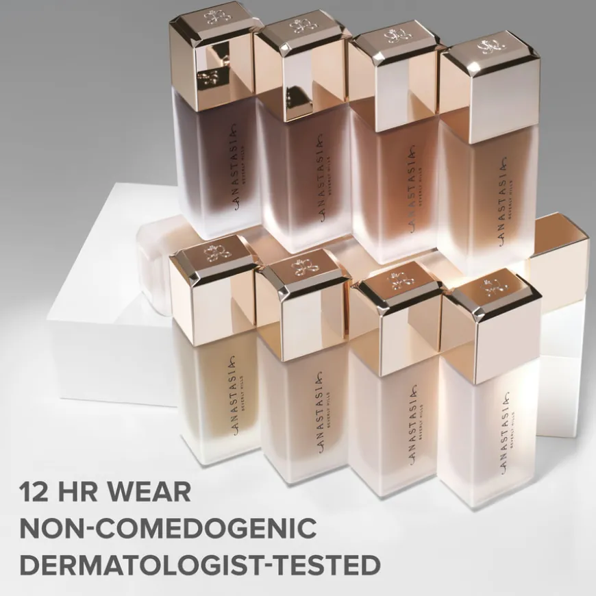 Tilgjengelig i 25 fleksible nyanser, er den ideell for alle hudtyper – spesielt fet hud. Dermatologisk testet, ikke-komedogen, cruelty-free og vegansk. Den sklisikre formelen smelter ikke, separerer ikke og legger seg ikke i linjer, men etterlater huden jevn, feilfri og strålende.