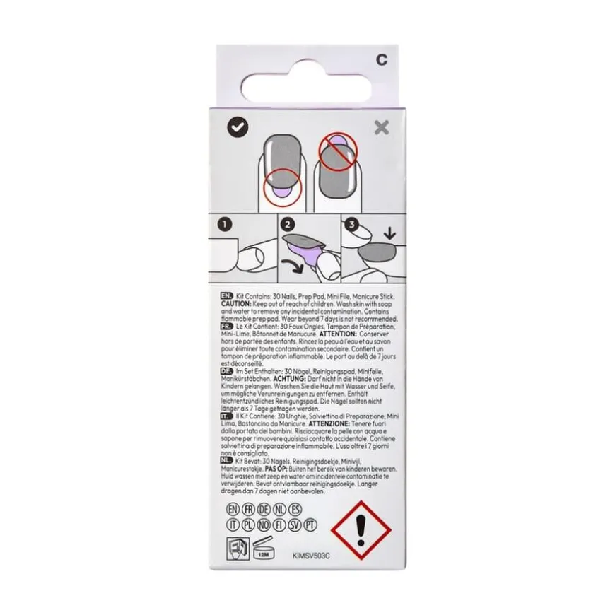 Hver eske inneholder 30 løsnegler, inkludert 6 dekorerte trendnegler for ekstra kreativitet. De ferdiglimte neglene er klare til bruk, krever ingen tørketid, og er enkle å fjerne. Perfekt for deg som ønsker en elegant fransk manikyr som holder i opptil én uke, uten skade på de naturlige neglene.