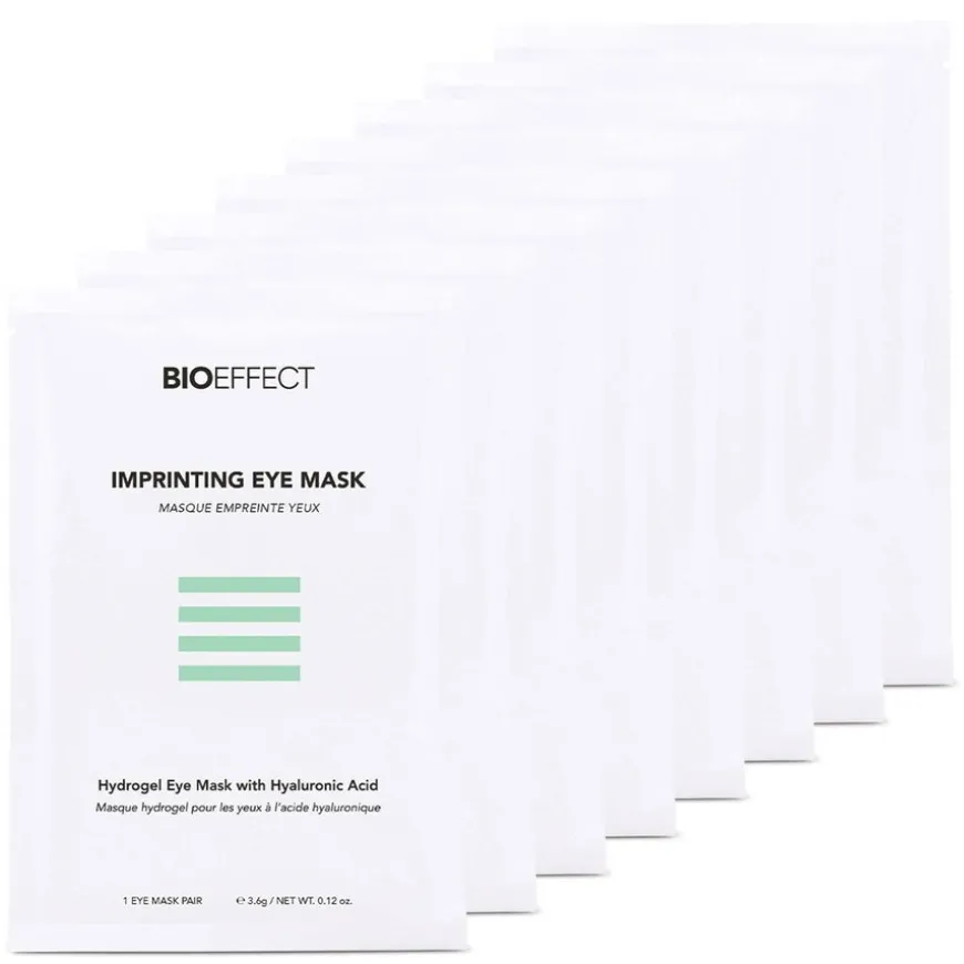 Imprinting Eye Mask er en beroligende og nærende hydrogelmaske for det sarte øyeområdet. Formulert med hyaluronsyre og glyserin for å gi dyp hydrering og som hjelper huden å holde på fuktighet. Øyemasken er spesielt designet til å kunne brukes sammen med EGF Eye Serum eller BIOEFFECT serum etter eget valg. Hydrogelmasken har en gel lignende tekstur som gir en avkjølende og beroligende følelse til huden. Inneholder kun 13 rene og nøye utvalgte ingredienser for å fremme maksimal effektivitet og absorpsjon av EGF byggplanter i BIOEFFECT serumer. Øyemasken er alkohol, olje-og duftfri, noe som gjør den perfekt egnet for det ømfintlige øyeområdet. Hydrogelmasken er laget av biobaserte miljøvennlige materialer og er 100% biologisk nedbrytbar og vannløselig.