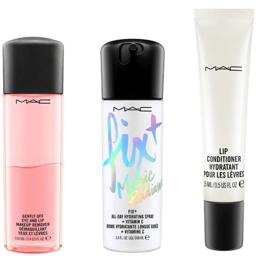GENTLY OFF EYE AND LIP MAKEUP REMOVER: WATERAQUAEAU, CYCLOPENTASILOXANE, ISOHEXADECANE, HEXYLENE GLYCOL, ROSA DAMASCENA (ROSE) FLOWER WATER, CUCUMIS SATIVUS (CUCUMBER) FRUIT EXTRACT, DIMETHICONE, BUTYLENE GLYCOL, CAPRYLYL GLYCOL, SODIUM CHLORIDE, PEG-4 DILAURATE, LAURYL METHYL GLUCETH-10 HYDROXYPROPYLDIMONIUM CHLORIDE, POTASSIUM PHOSPHATE, DIPOTASSIUM PHOSPHATE, DIPOTASSIUM EDTA, PHENOXYETHANOL FIX+ ALL-DAY HYDRATING SPRAY + VITAMIN C: WATERAQUAEAU, BUTYLENE GLYCOL, GLYCERIN, POLYSORBATE 20, TOCOPHERYL ACETATE, SODIUM HYALURONATE, ARGININE, CAFFEINE, ROSA RUBIGINOSA (ROSE HIP) SEED OIL, PORPHYRA YEZOENSIS (ALGAE) EXTRACT, GENTIANA LUTEA (GENTIAN) ROOT EXTRACT, PALMARIA PALMATA EXTRACT, ALGAE EXTRACT, YEAST EXTRACTFAEXEXTRAIT DE LEVURE, HYDROLYZED RICE BRAN EXTRACT, DIPOTASSIUM GLYCYRRHIZATE, SODIUM POLYASPARTATE, SILK POWDERSERICAPOUDRE DE SOIE, PHOSPHOLIPIDS, ASCORBYL GLUCOSIDE, SALICYLIC ACID, TREHALOSE, TOURMALINE, JOJOBA WAX PEG-120 ESTERS, POTASSIUM HYDROXIDE, CAPRYLYL GLYCOL, HEXYLENE GLYCOL, PENTYLENE GLYCOL, CITRIC ACID, HYDROXYETHYL UREA, FRAGRANCE (PARFUM), LIMONENE, BHT, DISODIUM EDTA, SODIUM CITRATE, PHENOXYETHANOL, POTASSIUM SORBATE, CHLORPHENESIN, SODIUM BENZOATE LIP CONDITIONER: PETROLATUM, POLYBUTENE, HYDROGENATED POLYISOBUTENE, TOCOPHEROL, RETINYL PALMITATE, ASCORBYL PALMITATE, CHOLESTEROL, BUTYROSPERMUM PARKII (SHEA BUTTER), PRUNUS AMYGDALUS DULCIS (SWEET ALMOND) OIL, TRITICUM VULGARE (WHEAT) GERM OIL, PERSEA GRATISSIMA (AVOCADO) OIL UNSAPONIFIABLES, RICINUS COMMUNIS (CASTOR) SEED OIL, SQUALANE, SILICA, VANILLIN, ETHYLHEXYL METHOXYCINNAMATE, STEARYL GLYCYRRHETINATE, FRAGRANCE (PARFUM), IRON OXIDES (CI 77491, CI 77492, CI 77499), YELLOW 10 LAKE (CI 47005) Please be aware that ingredient lists may change or vary from time to time. Please refer to the ingredient list on the product package you receive for the most up to date list of ingredients.