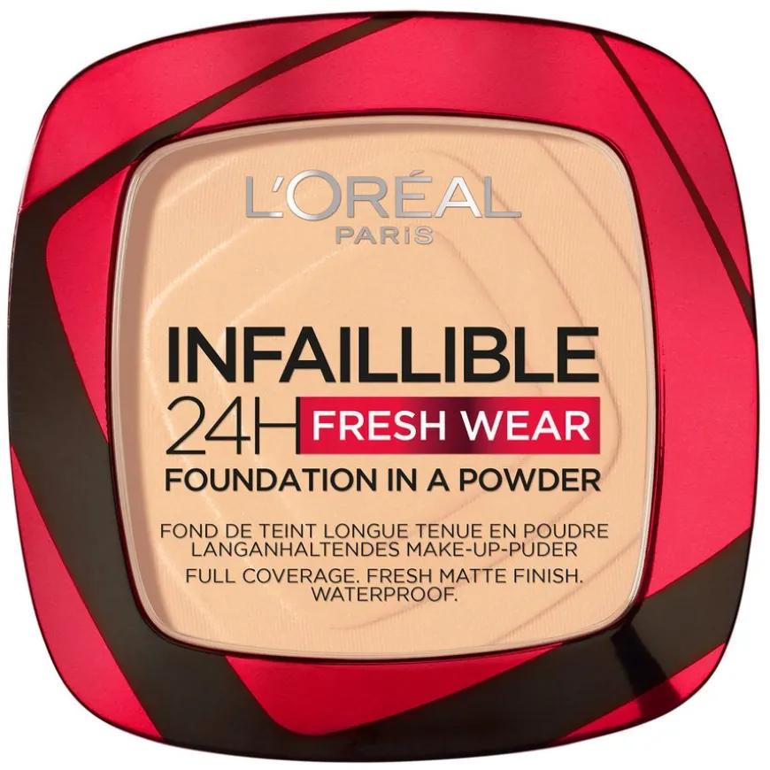 Oppdag Infaillible 24H Fresh Wear Foundation In A Powder fra L’Oréal Paris. Denne pudderfoundationen dekker og matter som en flytende foundation samtidg som den matter ned huden uten å «kake» seg. Dette er mer enn bare et pudder! Beriket med fine selvklebende pigmenter som fester seg til huden for å vare hele dagen. Det er lett å tone ut og gir huden din en naturlig, sømløs, fløyelsmyk matt finish. Tilgjengelig i flere nyanser for å passe til forskjellige hudtoner.